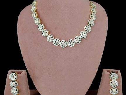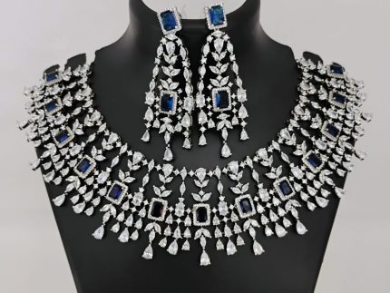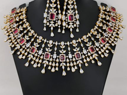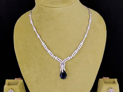 American Diamond Necklace Set: Necklaces and pendants with cubic zirconia stones are popular for both casual and formal wear. They may mimic the look of diamond necklaces at a more affordable price point.